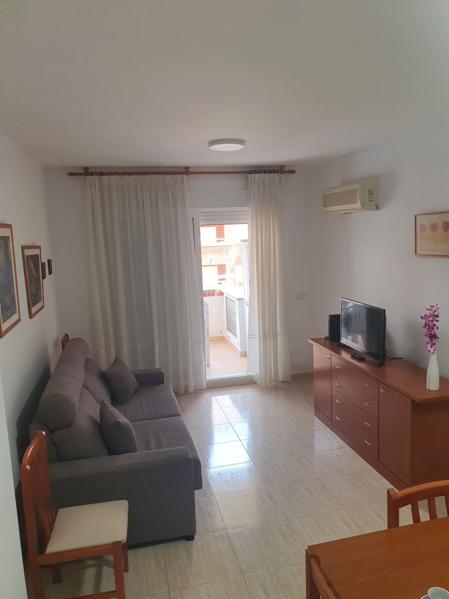 Die Wohnung ist in einem Mehrfamilienhaus in einer Verkehrsberuhigten Straße nur etwa 350 Meter vom Strand entfernt. Das Apartment ist voll ausgestattet mit Klimaanlage, einer schönen Terrasse mit Blick aufs Meer und die Berge. In der Garage steht Ihnen ein kostenfreier Privatparkplatz zur Verfügung.